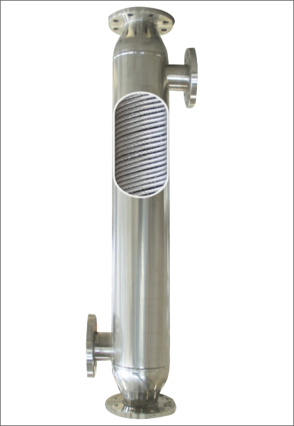 螺旋螺紋管換熱器全不銹鋼材質(zhì),按照ASME規(guī)定設(shè)計(jì)壽命為40年。利用歐文(OWEN)湍流抖振頻率準(zhǔn)則原理,采用換熱管束較小間隙設(shè)計(jì),有效消除了湍流抖振現(xiàn)象。有效延長(zhǎng)換熱器使用壽命。